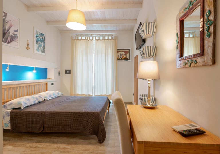 Camere eleganti e luminose con vista sul porto, dotate di ogni comfort.